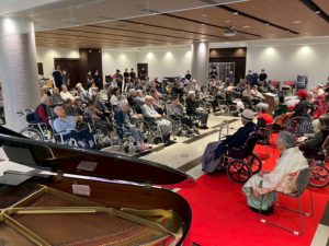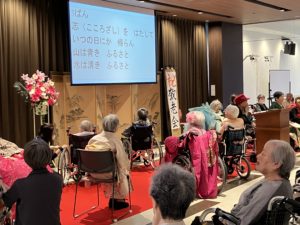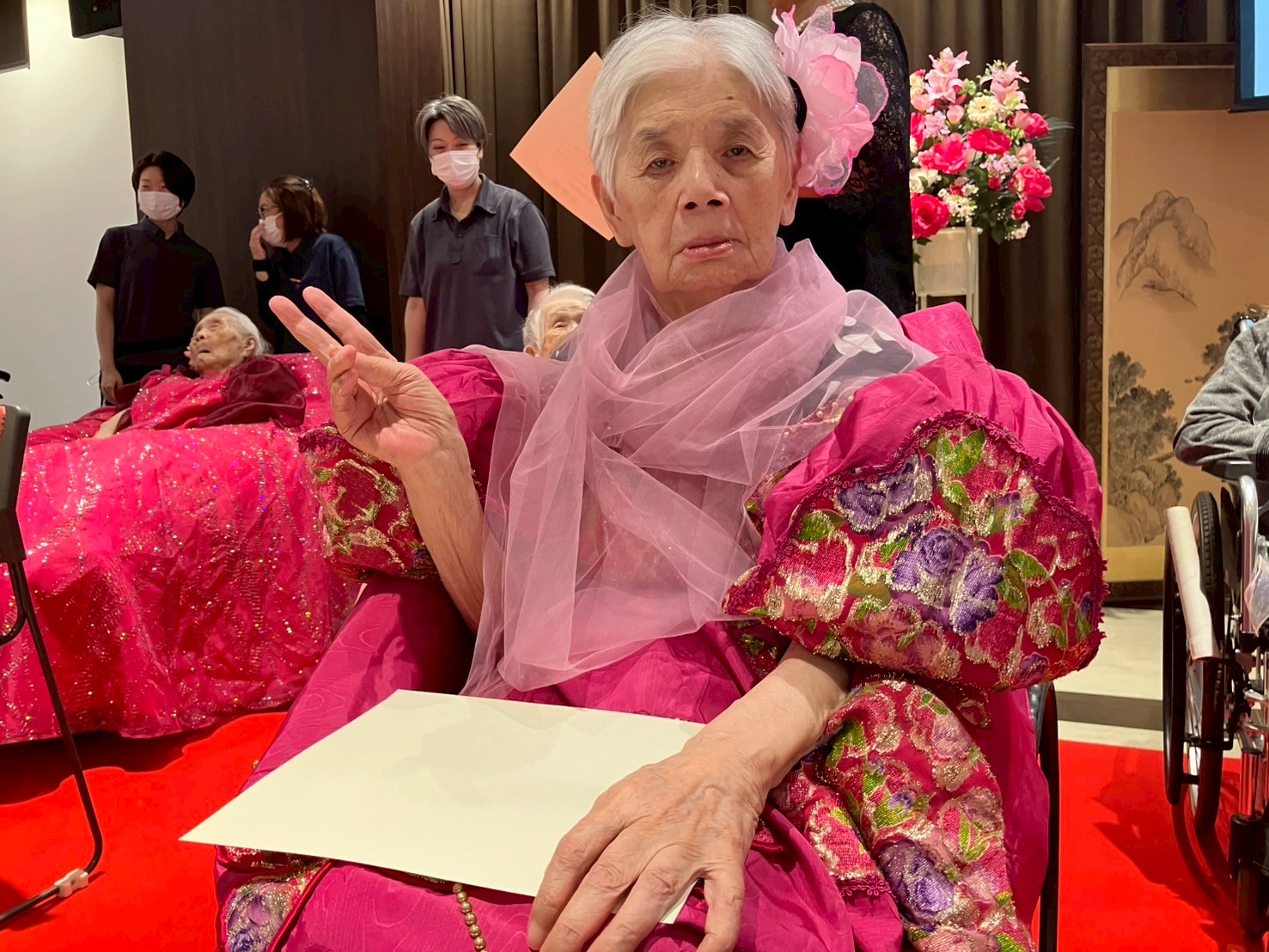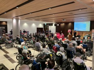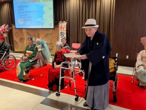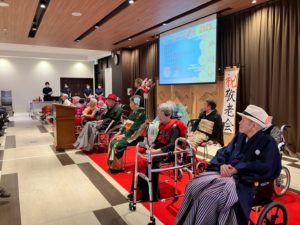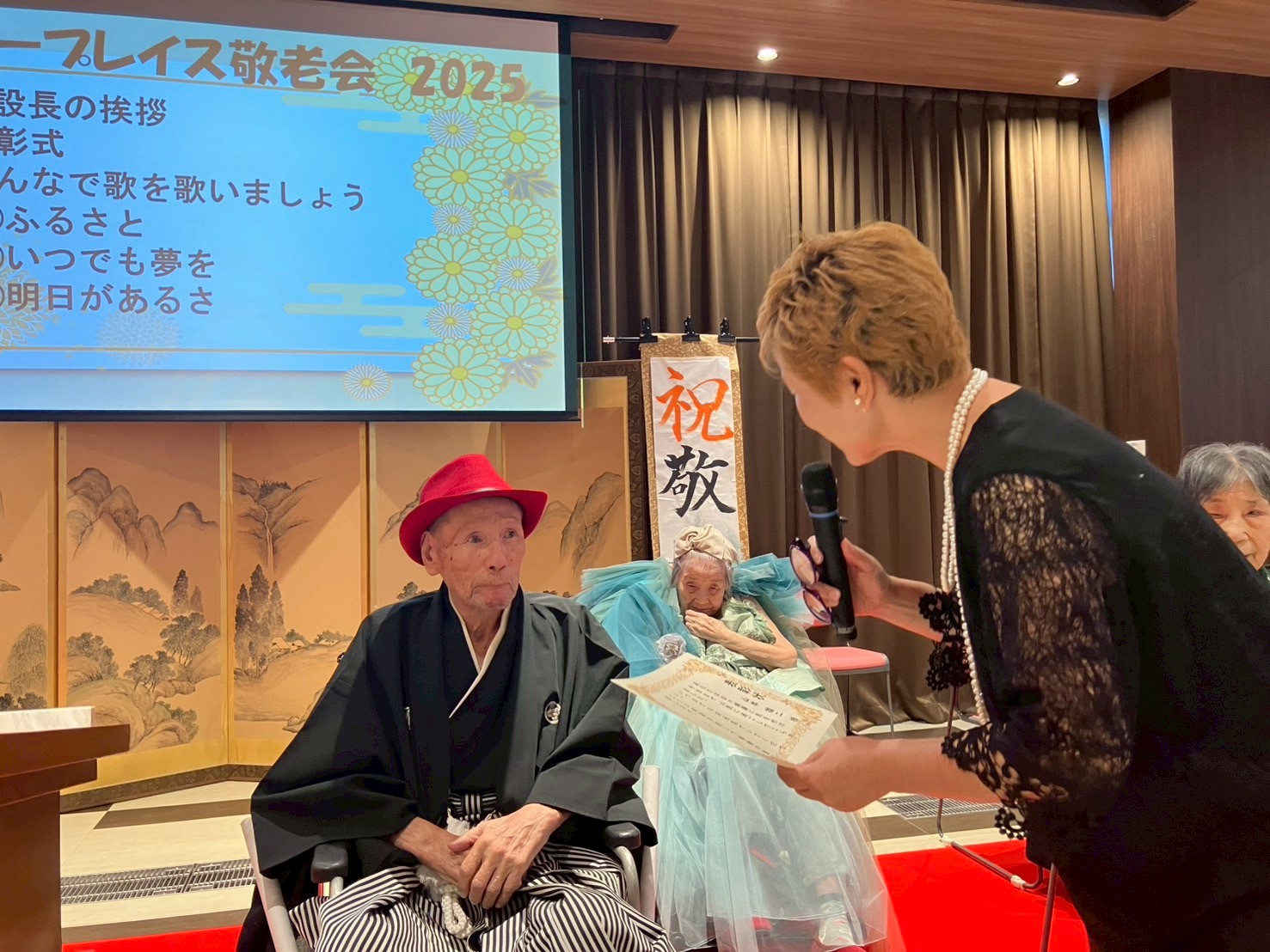 敬老会2025 2025年9月19日 敬老の日の翌日、9月16日に敬老会を開催しました。 1階地域交流スペースで、特養入居者様とショートステイ利用者様にご参加いただきました。 お好みの衣装にドレスアップされた祝年の方と100歳以上の方へ、敬老表彰をお渡ししたり、写真撮影をしたり、全員で歌を歌ったりしました。