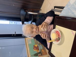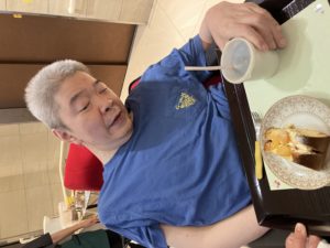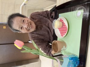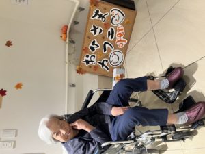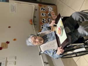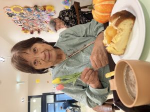 この日のおやつは、いつものユニット内ではなく、4階面会室やエレベーターホールに場所を移して、管理栄養士手作りのシフォンケーキでカフェタイムをお楽しみいただきました。