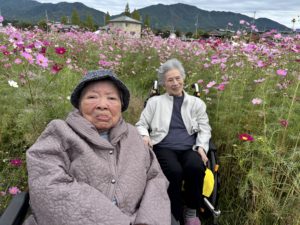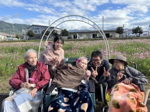 ドライブレクリエーション 2025年10月29日 3ABユニットの外出レクリエーション あいとうマーガレットステーションにお出かけです。 コスモス畑は満開 お店の中はハロウィン 季節を感じていただけるお出かけになったかと思います。