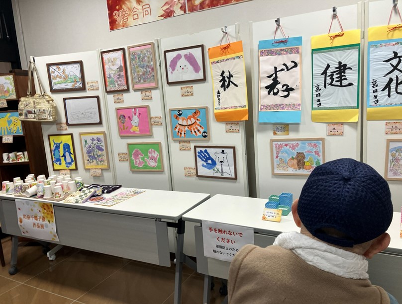 3階入居者の皆様の作品を展示した文化祭を、3階面会室で開催しています。