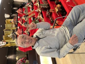 エントランスのひな人形で写真撮影も。