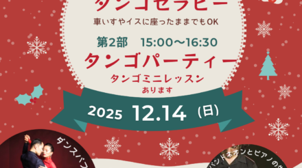 心暖まる居場所づくり12月開催は、タンゴパーティーとタンゴセラピーです。 本格的なタンゴのダンスパフ...