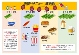 心橙祭当日の飲食につきましては、飲食用チケットをご購入のうえ、ご利用いただきますようお願い申し上げます。