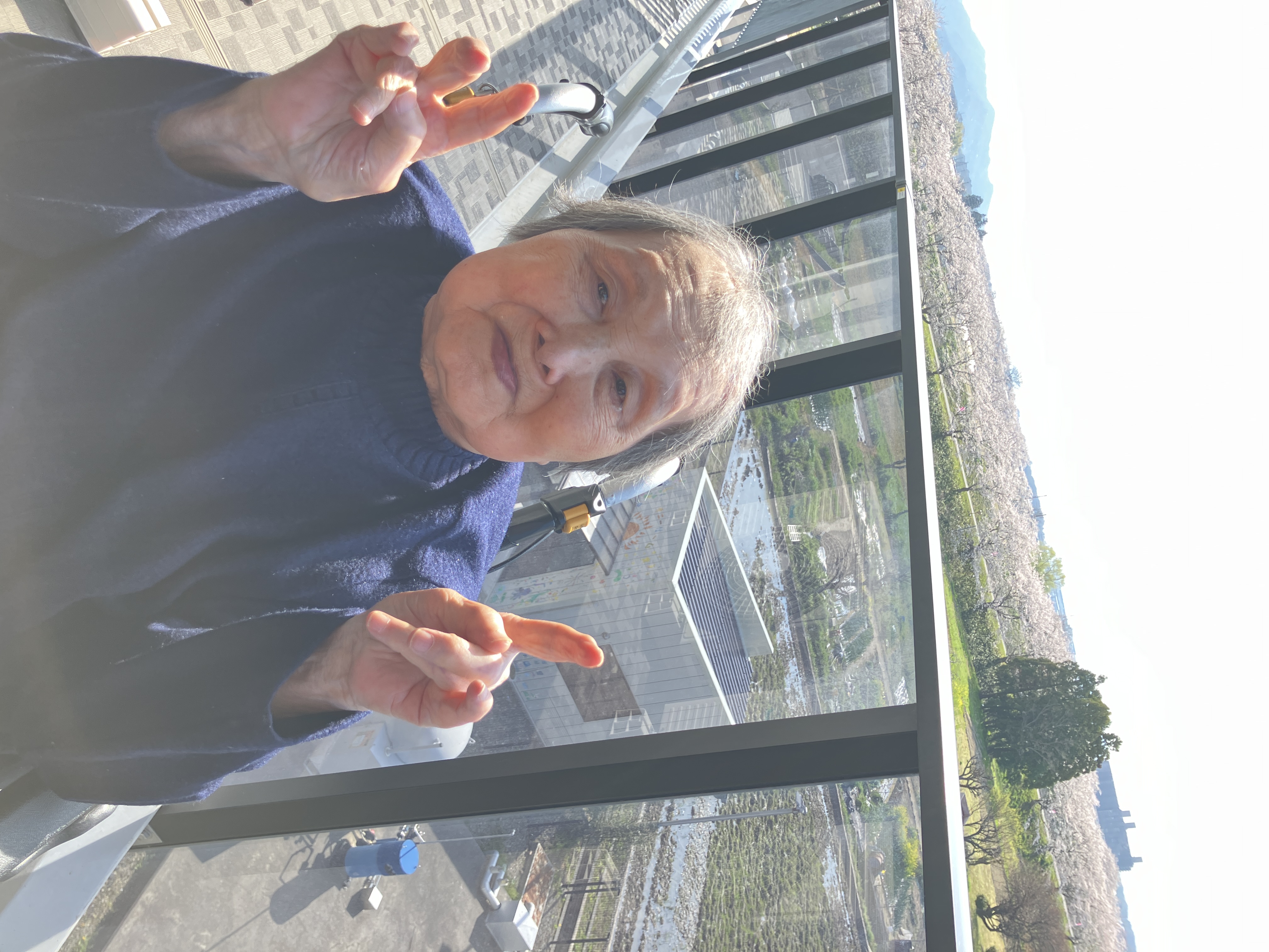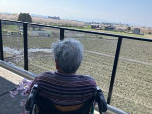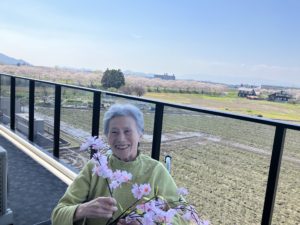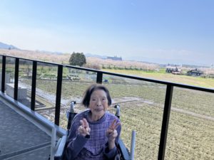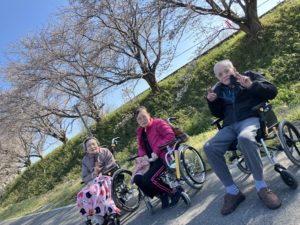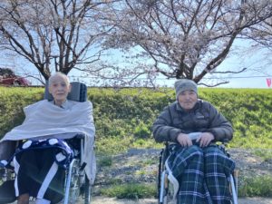 桜満開 2026年4月10日 サニープレイス彦根の南側、宇曽川の土手の桜並木が今年もきれいなピンク色に染まりました。 施設のベランダからのお花見や、土手の下までお散歩したり、感染対策のために盛大なレクリエーション活動は控えつつも、桜を楽しんでいただきました。